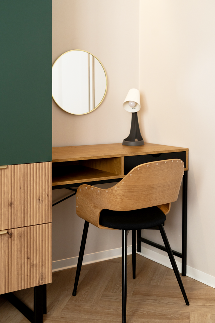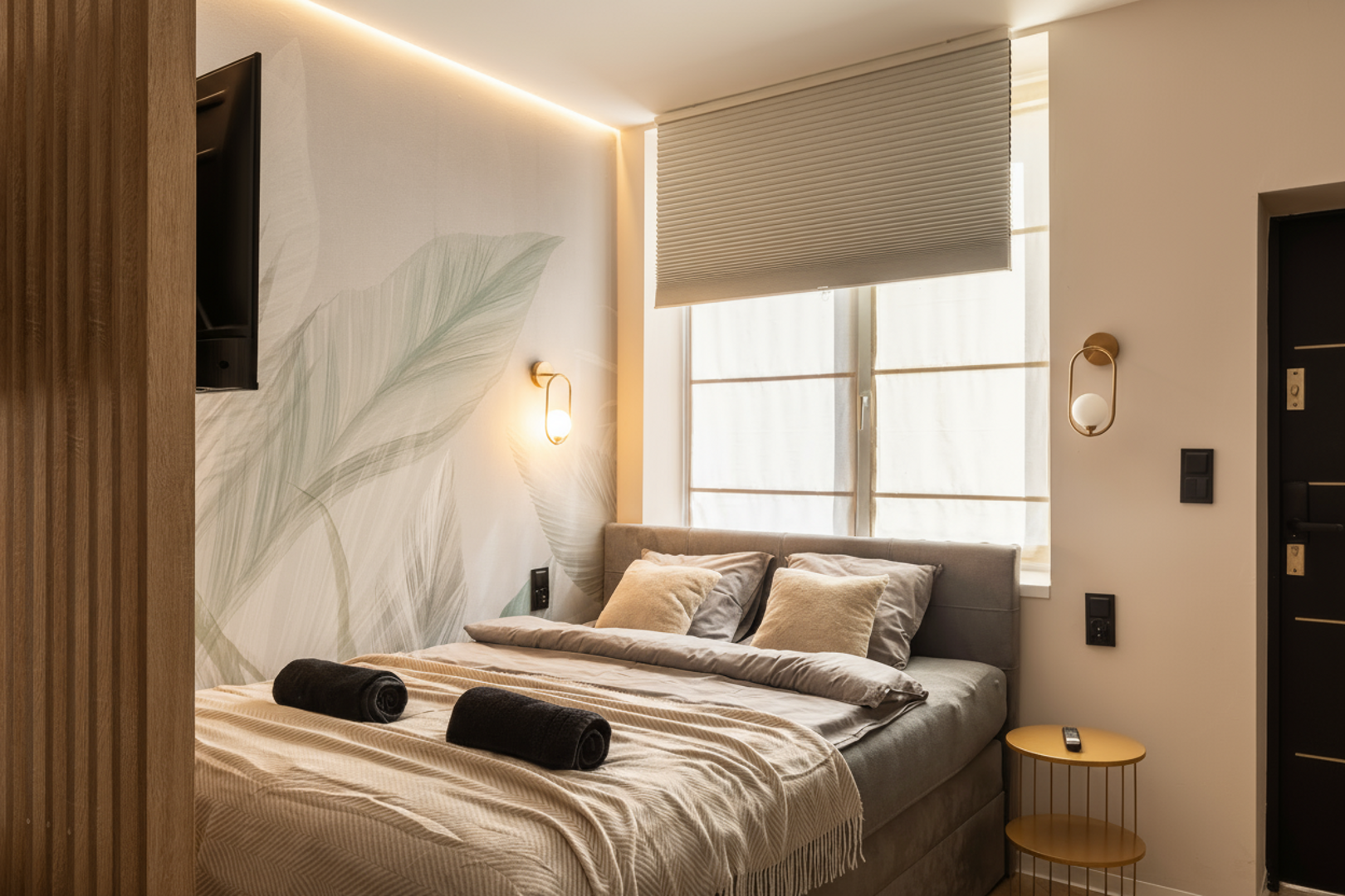 W Glam-Studio znajduje się jedno podwójne łóżko dla 2 gości. Wejście do apartamentu znajduję się bezpośrednio